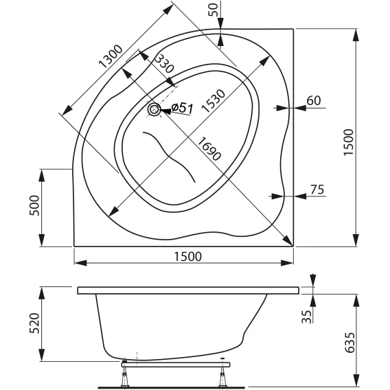 Акриловая ванна 150x150 см Vagnerplast Plejada VPBA150PLE3X-04