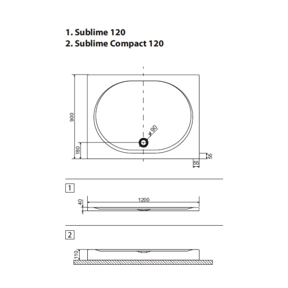 Акриловый поддон 120x90 см Excellent Sublime Compact BREX.SUB12WHC