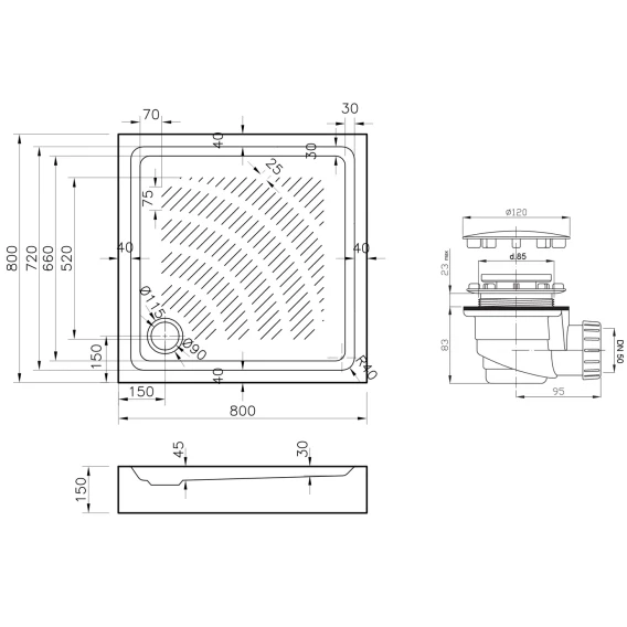 Акриловый поддон 80x80 см Lavinia Boho Rock 37073800 + 37011800