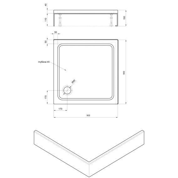 Акриловый поддон 90x90 см Aquatek DPA-0000005