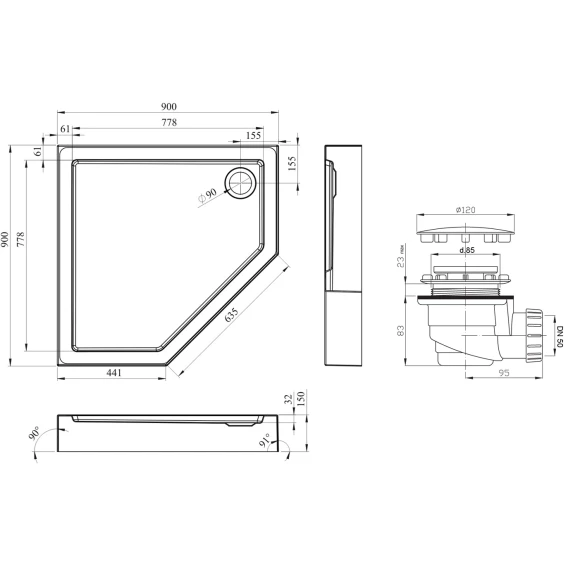 Акриловый поддон 90x90 см Lavinia Boho Art 37081900 + 37011800