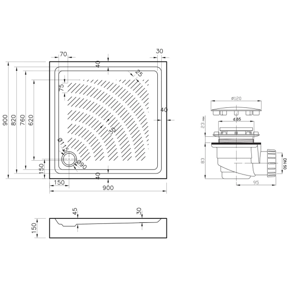Акриловый поддон 90x90 см Lavinia Boho Rock 37074900 + 37011800