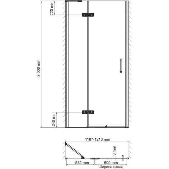 Душевая дверь 120 см WasserKRAFT Aller 10H05LBLACK MATT прозрачное