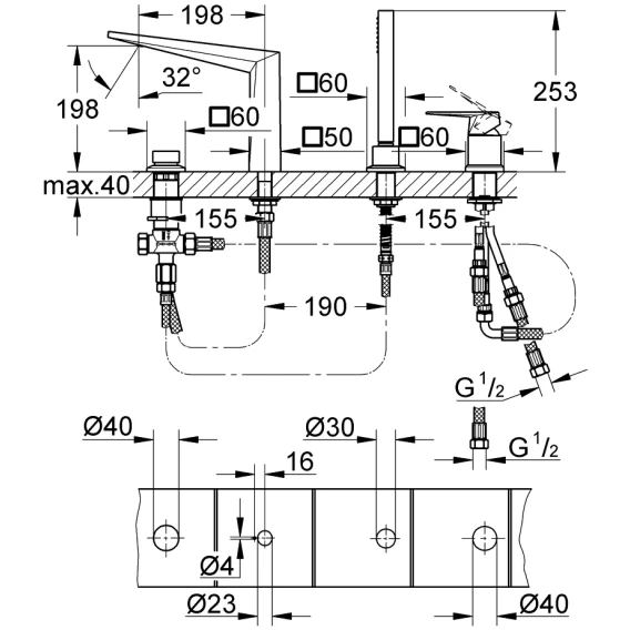 Смеситель на борт ванны Grohe Allure Brilliant 19787AL1