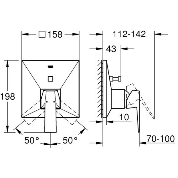 • с настенными розетками GROHE QuickFix (скрытые эксцентрики, уплотнение, скрытый монтаж)
