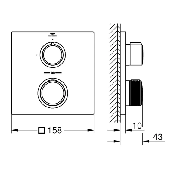 • GROHE SafeStop Plus опционно ограничитель температуры на 43°C / 46°C, включен