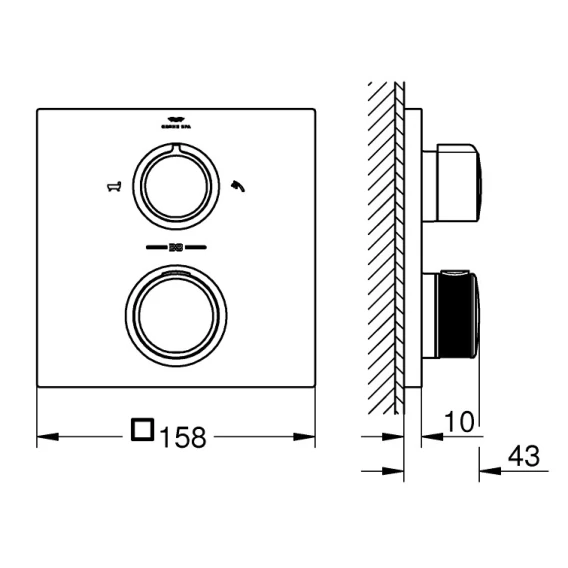 • GROHE SafeStop Plus опционно ограничитель температуры на 43°C / 46°C, включен