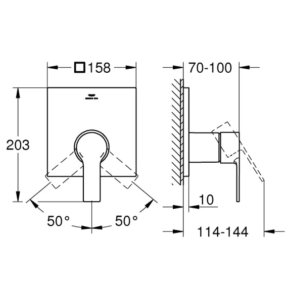 • с настенными розетками GROHE FastFixation скрытые эксцентрики, уплотнение, скрытый монтаж)