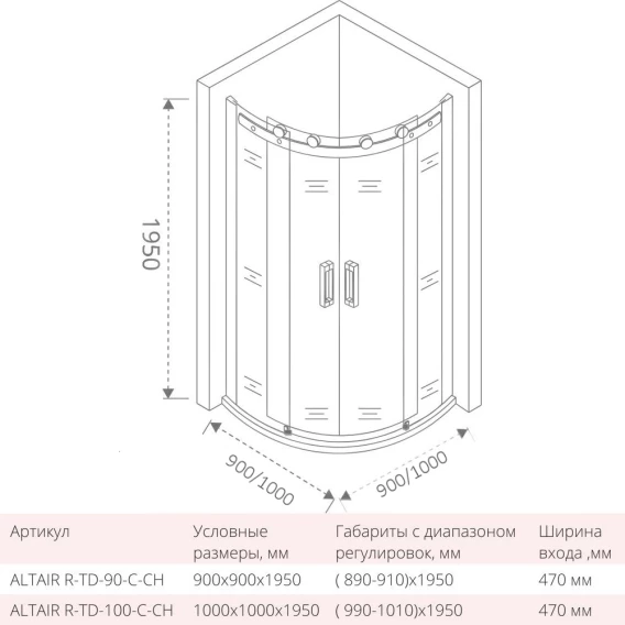 Душевой уголок 90x90 см Good Door Altair R-TD-90-C-CH прозрачное
