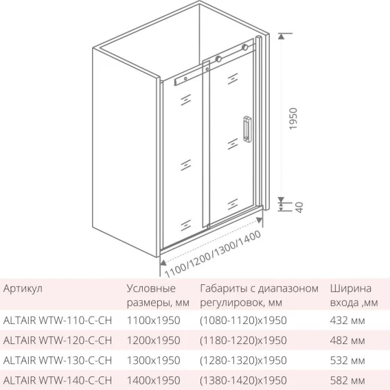 Душевая дверь 110 см Good Door Altair WTW-110-C-CH прозрачное