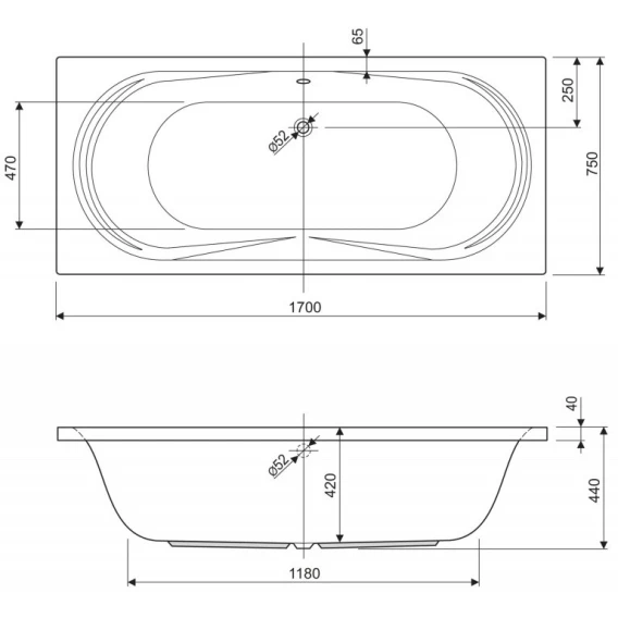 Акриловая ванна 170x75 см Cezares Amalfi AMALFI-170-75-45