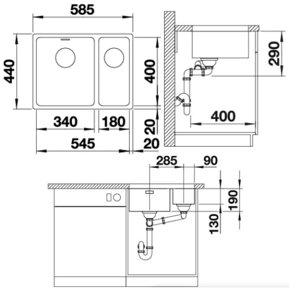 Кухонная мойка Blanco Andano 340/180-U InFino зеркальная полированная сталь 522979