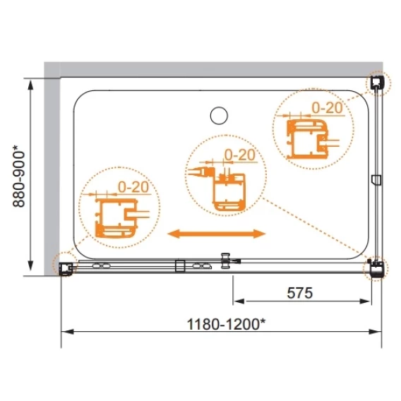 • Габариты с диапазоном регулировок, мм: (1180-1200)х(880-900)х2000