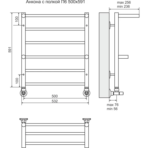 Полотенцесушитель водяной 591x532 Terminus Анкона с полкой П6