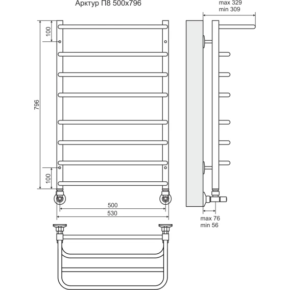 Полотенцесушитель водяной 796x530 подключение нижнее Terminus Арктур с полкой П8