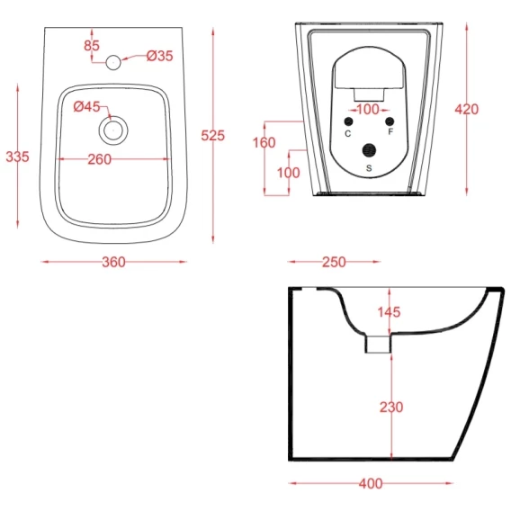 Раковина CeramaLux G-308B 42x42 см, напольная, черный/белый