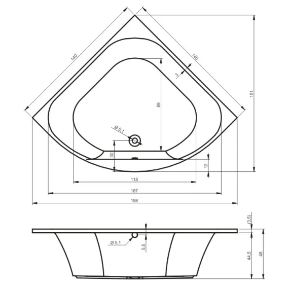 Акриловая ванна 140x140 см Riho Atlanta BB7000500000000