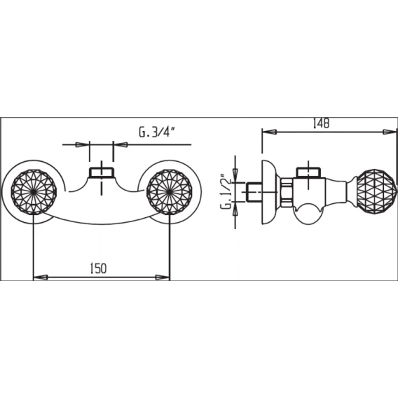 Смеситель для душа бронза, ручки Swarovski Cezares Atlantis ATLANTIS-DS-02-Sw