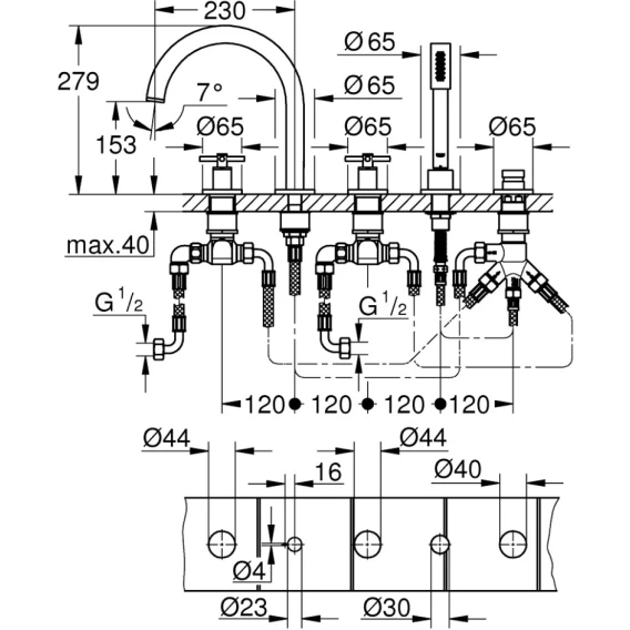 • подключение для душевого шланга