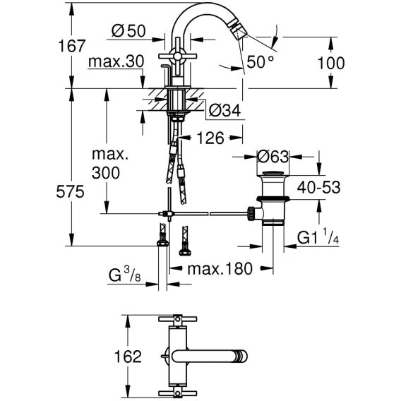 Высота излива 10 см