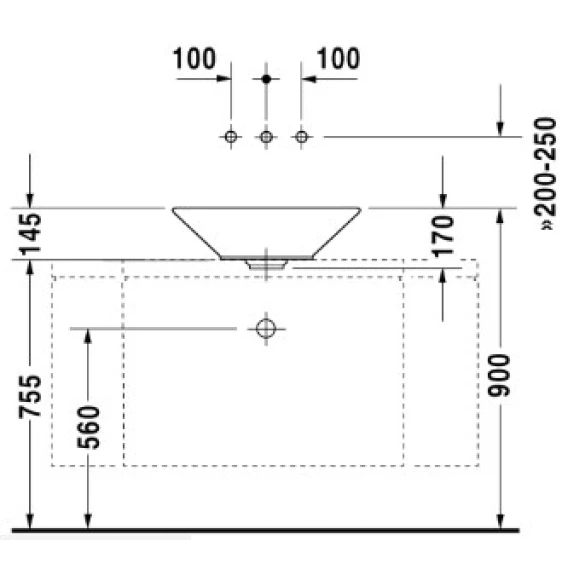 Намеченных отверстий для смесителя