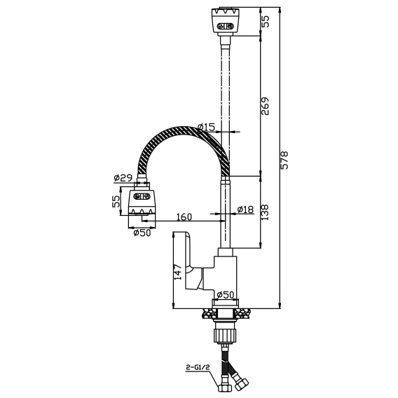 Крепление, Аэратор, Гибкая подводка, Душевая лейка