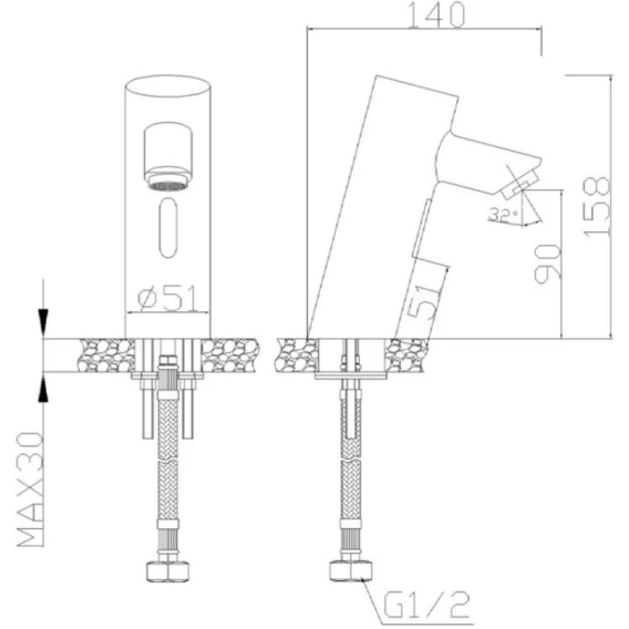 • Активация с помощью инфракрасного датчика. Диапазон обнаружения от 12 до 18 см