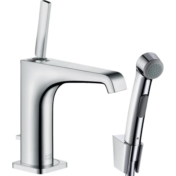 • состоит из: однорычажного смесителя для раковины, ручного душа-биде, держателя для душа, душевого шланга, сливного набора