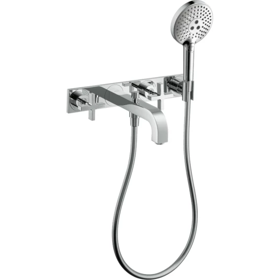 • состоит из: смесителя для ванны на 3 отверстия, ручного душа, держателя для душа, душевого шланга