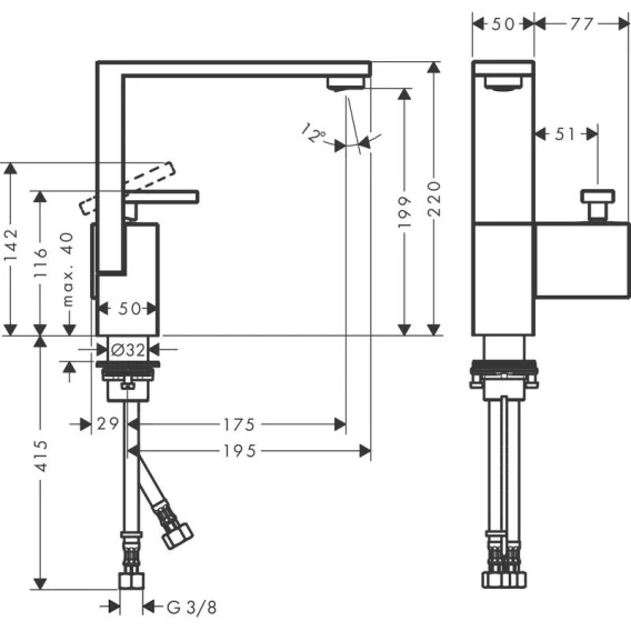 Смеситель для раковины с донным клапаном Axor Edge 46010000