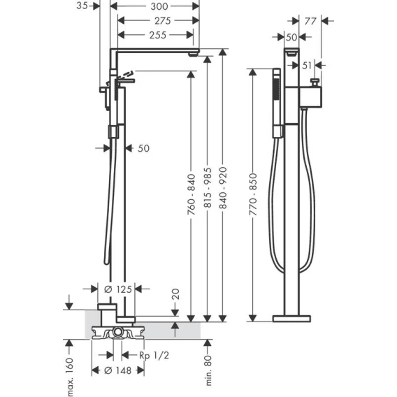 • состоит из: однорычажный смеситель для ванны напольный, ручной душ с дубинкой, душевой шланг, держатель для душа
