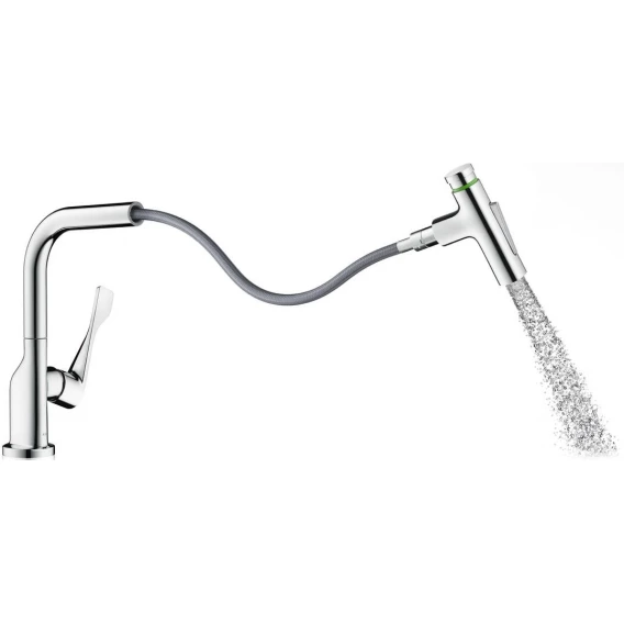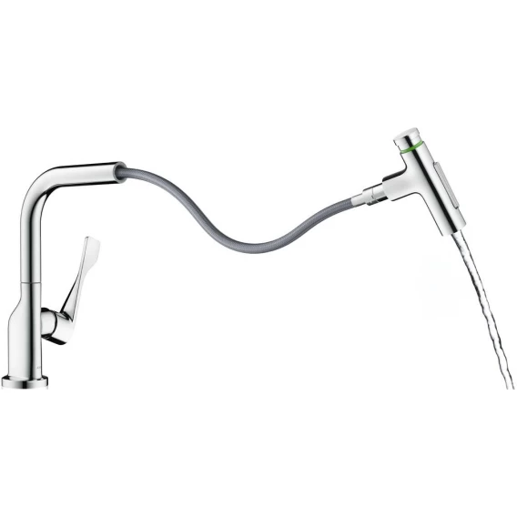 • блокируемая душевая лейка, струя возвращается через нажимной переключатель спрея, а струя возвращается автоматически при закрытии ручки