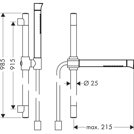 • состоит из: ручного душа, штанги для душа, душевого шланга, слайдера