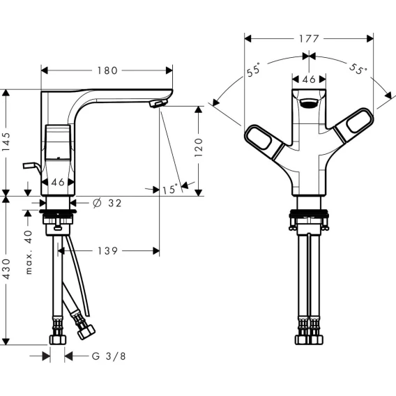 • состоит из: смесителя для раковины на 2 ручки, сливного набора