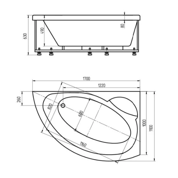 Акриловая ванна 170x110 см правая Aquatek Аякс 2 AYK170-0000007