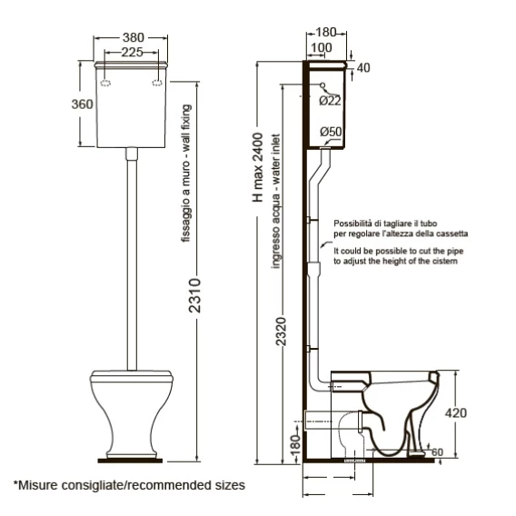 Бачок высокий для унитаза Azzurra Charme CHA400/С bi