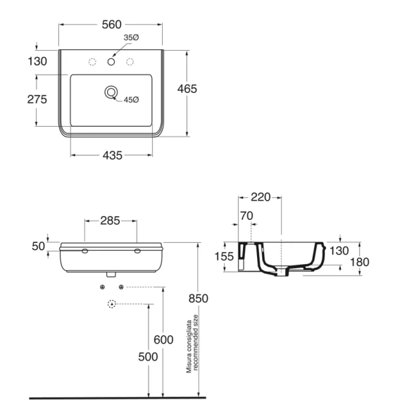 Раковина 55x46,5 см Azzurra Charme CHA255bi*1