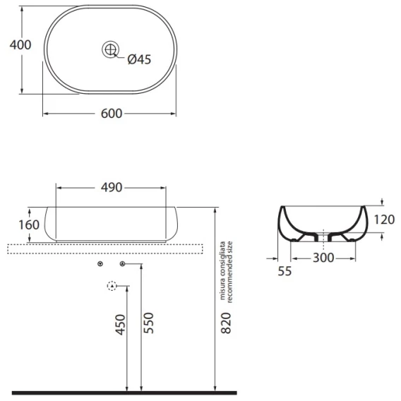 Раковина чаша 60x40 см Azzurra Nuvola NUV200/AP6bi