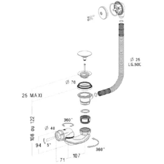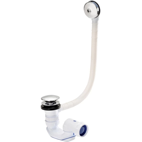 Слив-перелив для ванны с сифоном Co-injection. Пластиковый. Нажимной, система EASYCLIC. Сифон со скоростным сливом 70л/мин. Пробка латунь хром, розетка перелива АВS хром. Длина перелива 650 мм. Со сливным патрубком D40/50мм.