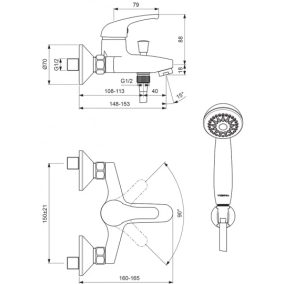 Крепление, Аэратор, Душевой шланг, Душевая лейка, Держатель для душевой лейки
