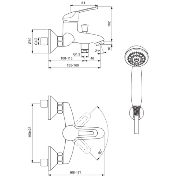 Крепление, Аэратор, Душевой шланг, Душевая лейка, Держатель для душевой лейки