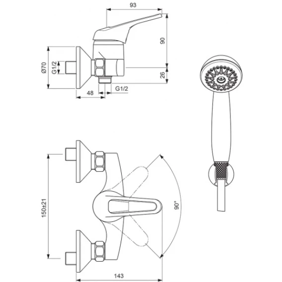 Крепление, Душевой шланг, Душевая лейка, Держатель для душевой лейки