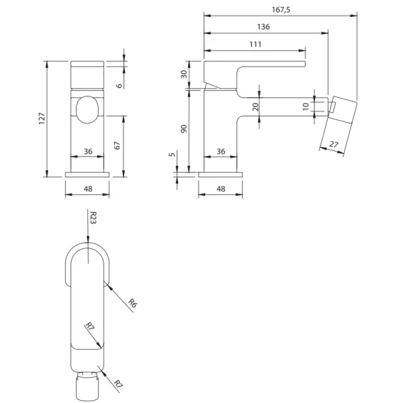 Смеситель для биде без донного клапана Omnires Baretti BA7820BL