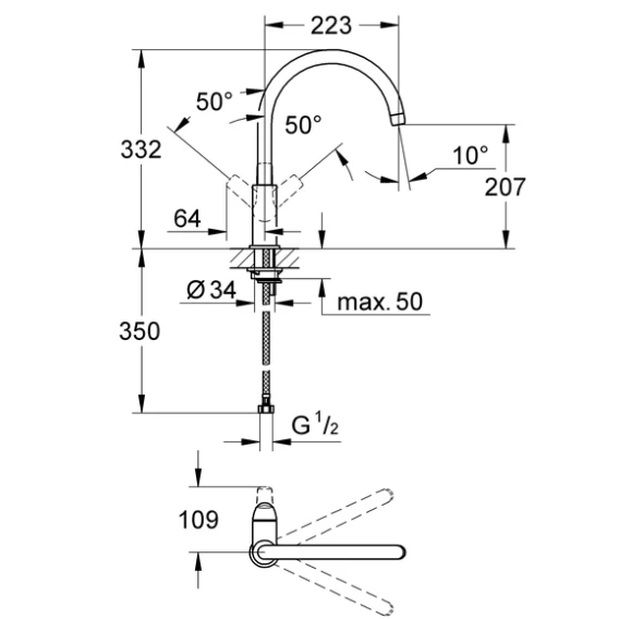 Высота излива 20.7 см