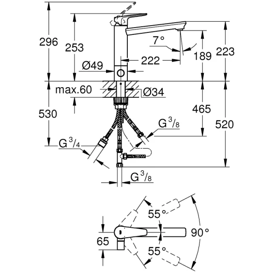 • GROHE QuickFix Plus - сверхбыстрая и простая установка - не требуется никаких инструментов