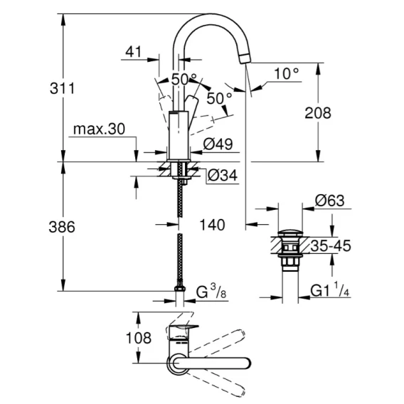 Смеситель для раковины с донным клапаном Grohe BauEdge New 23911001