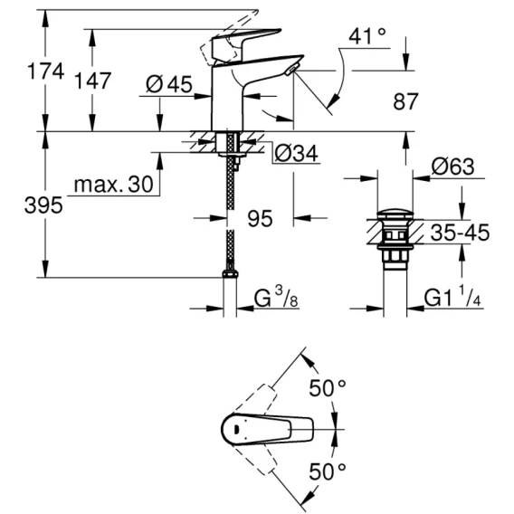 Смеситель для раковины с донным клапаном Grohe BauEdge New 23896001