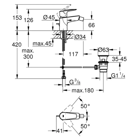 Смеситель для биде с донным клапаном Grohe BauEdge New 23331001