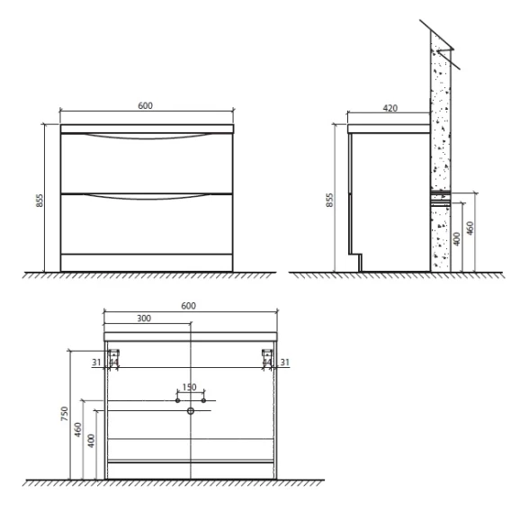 Тумба белый дуб 60 см BelBagno Ancona-N ANCONA-N-600-2C-PIA-WO