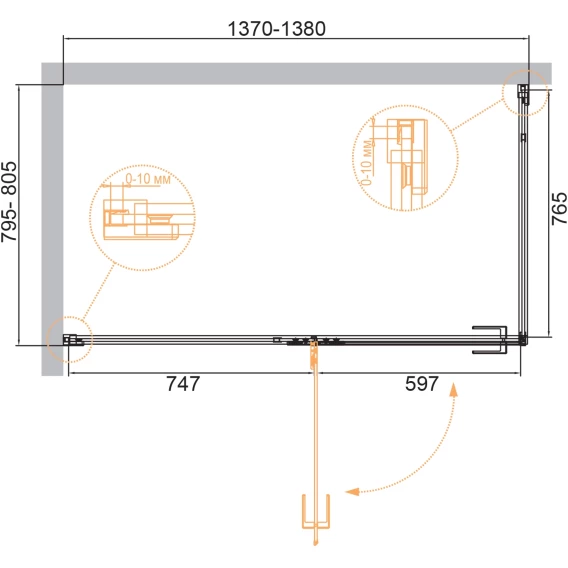 Душевой уголок 138x80 см Cezares BELLAGIO-AH-1-140/80-C-BORO прозрачное